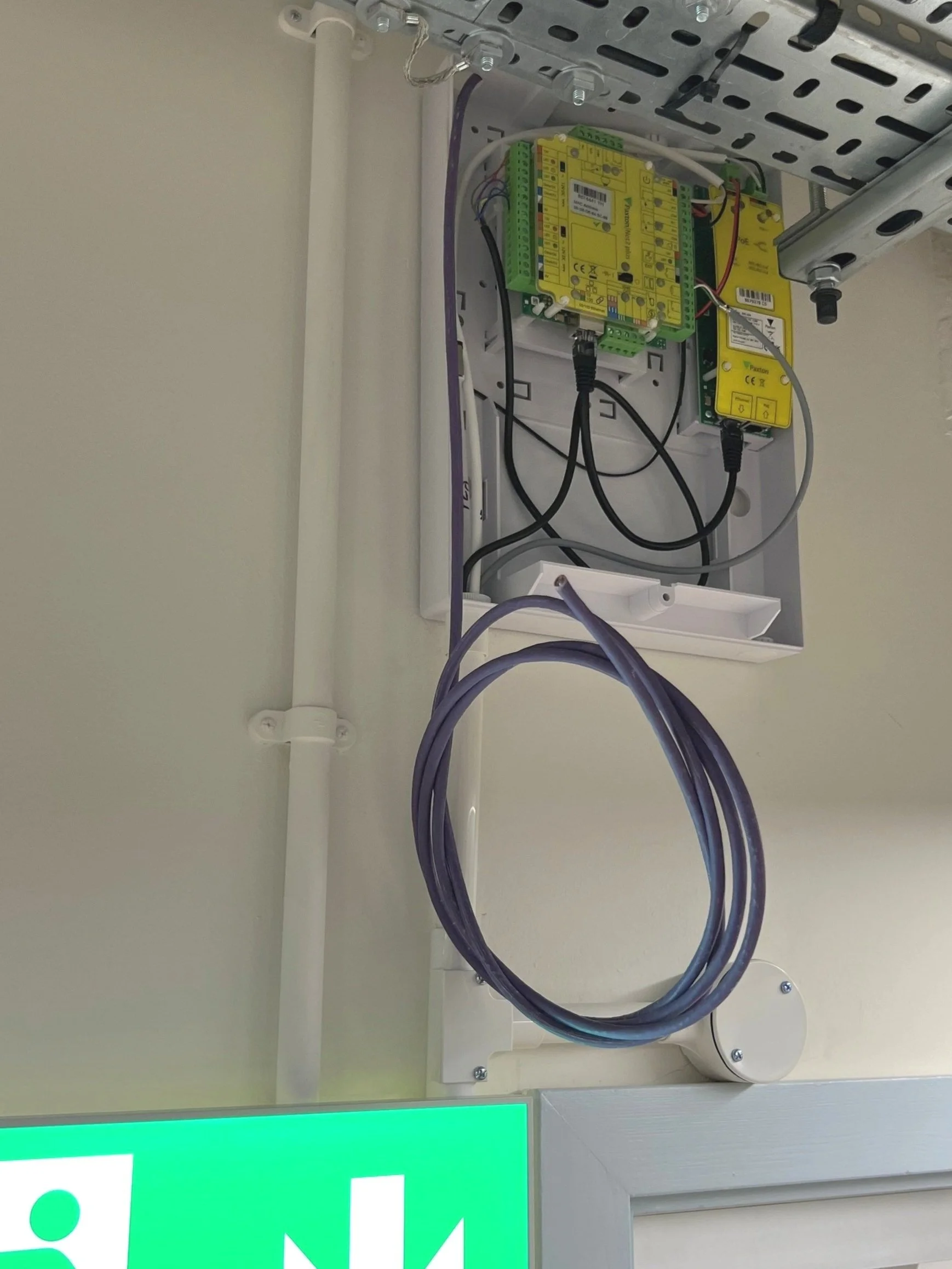 Access Control was required for 2 exit doors on the floor. Our solution was Paxton Net2 Plus controllers for each door. Infrared Push-to-Exit buttons were chosen for their high quality finish.