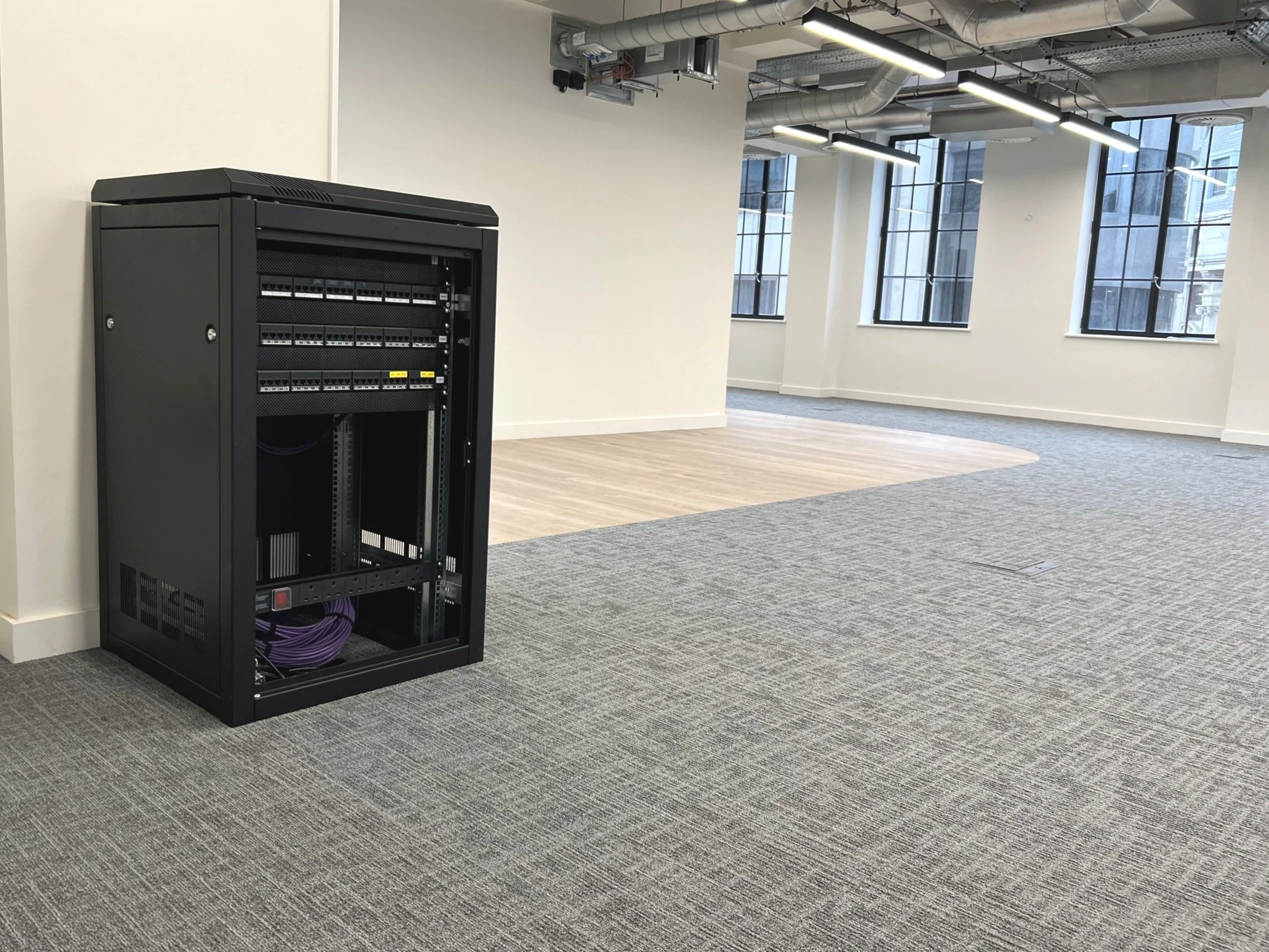 Our client had acquired a new office space in central London to allow them more space for growth as well as improve the facilities available to all staff. The new office was within a recently renovated building with their floor being a complete blank canvas. We worked with the client and their contractors to take care of all technology / IT requirements for the new location.
